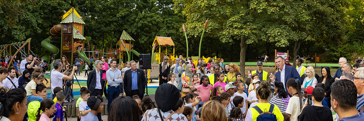 Vous êtes ici : Accueil > Actualités > À Ballanger, une nouvelle aire de jeux qui fait des heureux À Ballanger, une nouvelle aire de jeux qui fait des heureux Publié le mardi 30 septembre 2025 Les internautes ont choisi le thème du jardin extraordinaire pour cette installation, qui permet aux enfants de vivre des aventures merveilleuses Toboggans, balançoires, tourelles et passerelle suspendue…La nouvelle aire de jeux du parc Robert-Ballanger,inaugurée le 27 août, offre aux enfants un véritable terrain d’aventures et d’imagination. Réalisée pour un montant de 1 million d’euros (dont 300 000 financés par l’État), elle s’inscrit dans le vaste plan pluriannuel de rénovation des aires de jeux d’Aulnay-sous-Bois. Notre ville en compte soixante-dix-neuf, pour la plupart installées au début des années 2000 : leur modernisation était devenue indispensable. Conformes aux toutes dernières normes de sécurité, les aires de jeux sont également inclusives, c’est-à-dire accessibles aux enfants en situation de handicap. Après la place Saint-Jean, dans le quartier de la Rose-des-Vents, le parc Ballanger accueille ainsi un équipement à la fois sûr, moderne et ouvert à tous. Pour concevoir ces espaces, la parole a été donnée aux principaux intéressés : les enfants et leurs familles. Ils étaient invités à voter en ligne pour choisir le thème de la nouvelle installation. Au parc Ballanger, c’est celui du jardin extraordinaire qui a remporté les suffrages. Une démarche de participation citoyenne reconduite pour l’aire de jeux du parc Gainville (voir encadré ci-dessous). Avec plus de 1 400 votes enregistrés, une chose est sûre : à Aulnay-sous-Bois, le jeu est une affaire trop sérieuse pour être laissée aux seuls adultes ! Bientôt une îles aux pirates à Gainville La démarche de participation citoyenne, déjà mise en oeuvre pour l’aire de jeux Ballanger, a été reconduite pour le parc Gainville. Plus de 600 familles ont pris part au sondage en ligne et ont choisi le thème de l’île aux pirates ! Toboggans, cabanes, balançoires, ponts, échelles, ateliers ludiques et chaises de détente composeront cette nouvelle aire, enrichie de modules inclusifs pour garantir l’accessibilité à tous. Les travaux sont bien avancés et l’inauguration est attendue très prochainement. Partager Partager sur FacebookPartager sur TwitterPartager sur Google+ImprimerEnvoyer à un ami Retour à la liste