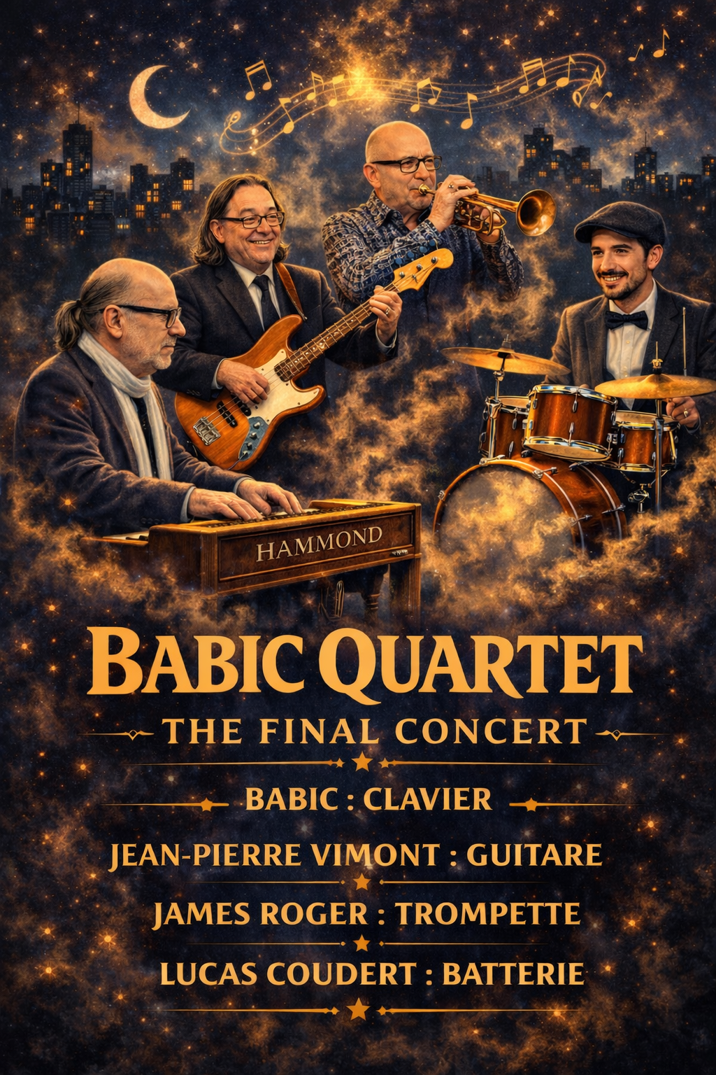 Vous êtes ici : Accueil > Agenda > Loisirs > Culture > Par structures > Conservatoire de musique et de danse > Heure Musicale Exceptionnelle – Babic Quartet Heure Musicale Exceptionnelle – Babic Quartet Conservatoire de musique et de danse 10/03/2026 mardi 10 mars 2026 à 20h Le Conservatoire vous invite à une soirée toute particulière À l’occasion d’une heure musicale exceptionnelle, le Babic Quartet se produira le mardi 10 mars à 20h, dans l’auditorium. Pour célébrer la fin de carrière de Babic au Conservatoire, le quartet a imaginé un programme à son image : généreux, vibrant et résolument éclectique. Pour ce dernier concert, le public pourra savourer un répertoire inspiré des grandes figures du jazz telles que Herbie Hancock, Joe Zawinul, Thad Jones, Eddie Harris, Billy Cobham, Dave Brubeck et Jaco Pastorius. Une soirée placée sous le signe du partage, de la convivialité et du plaisir musical. Horaires Mardi 10 mars 2026 à 20h00 Tarifs Entrée libre Horaires Auditorium : 12 rue de Sevran Partager Partager sur FacebookPartager sur TwitterPartager sur Google+ImprimerEnvoyer à un ami Retour à la liste Sur le même thème... Voir tout l'agenda 06/03/2026 Conservatoire de musique et de danse Pour ou contre ? – L’histoire de la musique en question 10/03/2026 Conservatoire de musique et de danse Heure Musicale Exceptionnelle – Babic Quartet 16/03/2026 Conservatoire de musique et de danse Carte Blanche à…