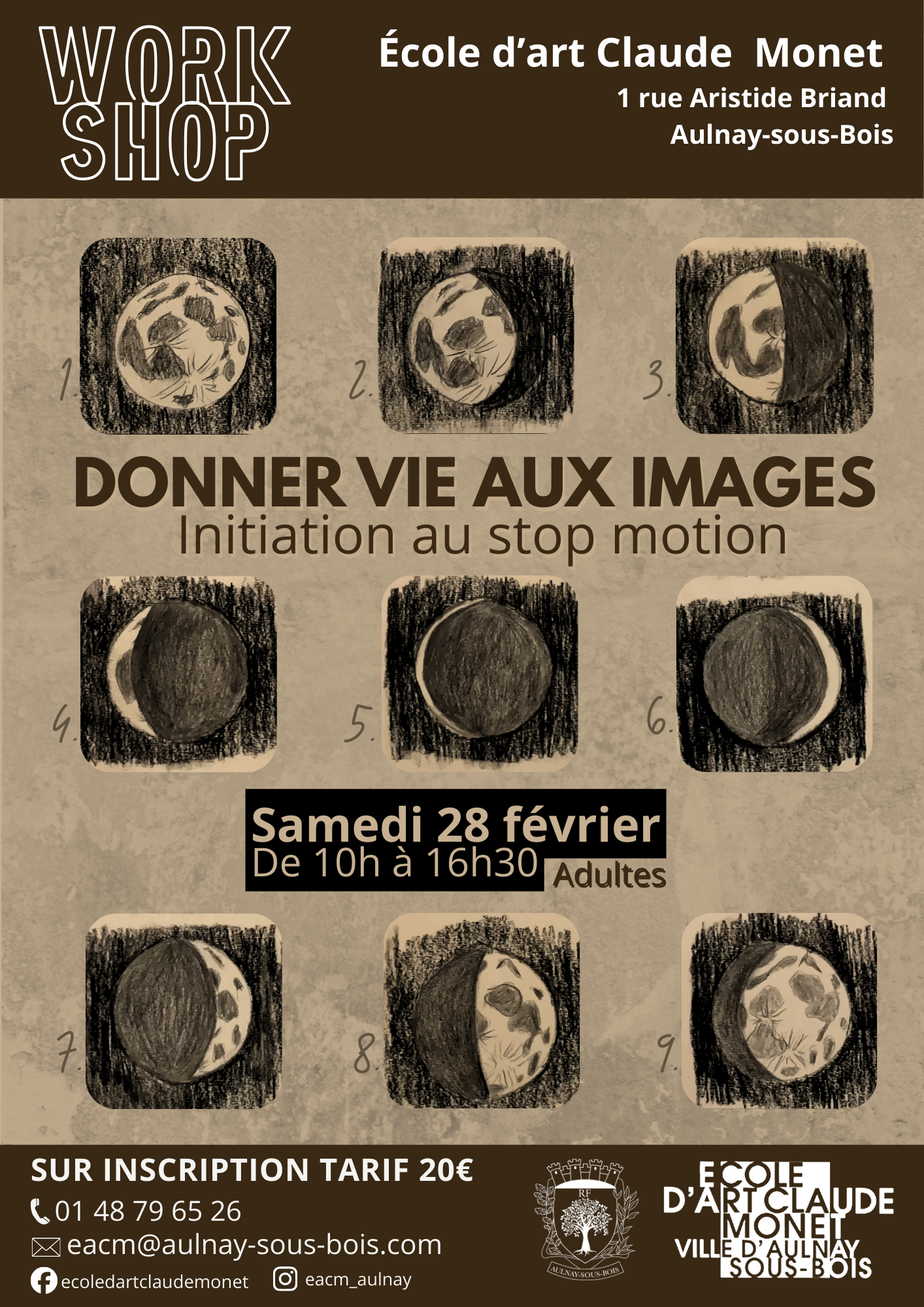Vous êtes ici : Accueil > École d'Art Claude Monet > Workshop Stop-motion Adultes Workshop Stop-motion Adultes Publié le mercredi 28 janvier 2026 Donner vie aux images Workshop d’initiation au stop motion Le samedi 28 février au 2026 De 10h à 16h30 Adultes Une journée pour s’initier au stop motion. Cette technique permet de donner vie à des objets, des dessins ou des personnages fabriqués en atelier. Elle relie des savoir-faire manuels (découpe, modelage, dessin) et des outils numériques (logiciels de dessins vectoriels, appareils photo, tablettes, logiciels de montage). Au cours de ce workshop, les participants expérimenteront cette métamorphose : comment transformer une création tangible en récit animé. L’objectif est de travailler la narration visuelle, la patience du geste image par image, tout en découvrant le potentiel créatif du numérique. Workshop proposé par Annick AMABLE enseignante à l’école d’art Claude Monet. Nombre de places limité NB : Apportez votre clé USB pour repartir avec votre réalisation École d’art Claude Monet 1 rue Aristide Briand Tarif : 20 euros Inscription au 01 48 79 65 26 ou eacm@aulnay-sous-bois.com Partager Partager sur FacebookPartager sur TwitterPartager sur Google+ImprimerEnvoyer à un ami Retour à la liste
