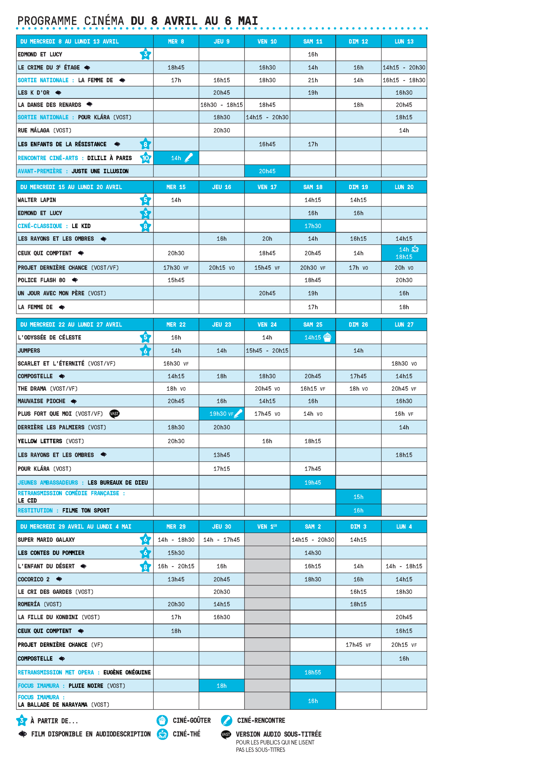 Cinéma Vous êtes ici : Accueil > Mes loisirs > Culture > Théâtre et Cinéma Jacques Prévert > Cinéma Programme cinéma du 11 mars au 6 avril Agenda Cinéma Ciné-Gazette du 11 mars au 6 avril Billetterie